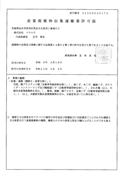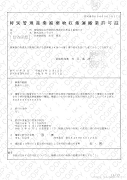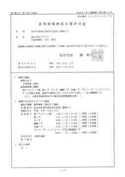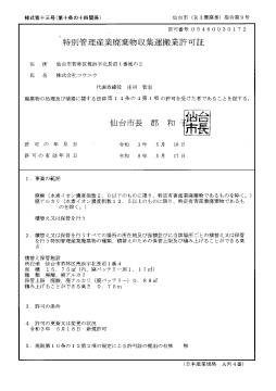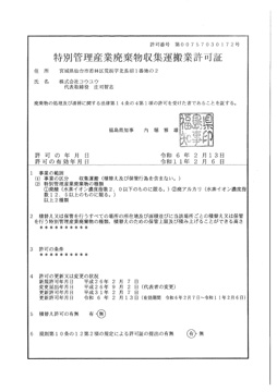 特管産廃収集運搬許可証(仙台市・特管積替)