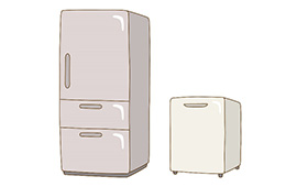 テレビ、冷蔵庫、洗濯機、エアコンの家電4品目、(家電リサイクル料の納付から運搬まで行います)